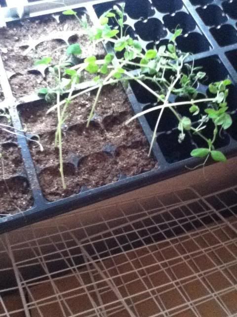 Was it really seven days ago I planted those new pea plants in plastic cells and plopped them in my window? A week later I'm planting four outside because they've outgrown their cells! It's amazing how well the second batch has grown - makes the batch currently outside look lame. I'll give the older peas another two weeks to get the leg on, otherwise, they are getting replaced.